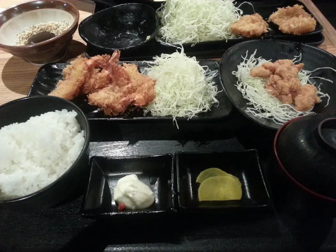 炸蝦定食跟炸雞,迷你烏冬