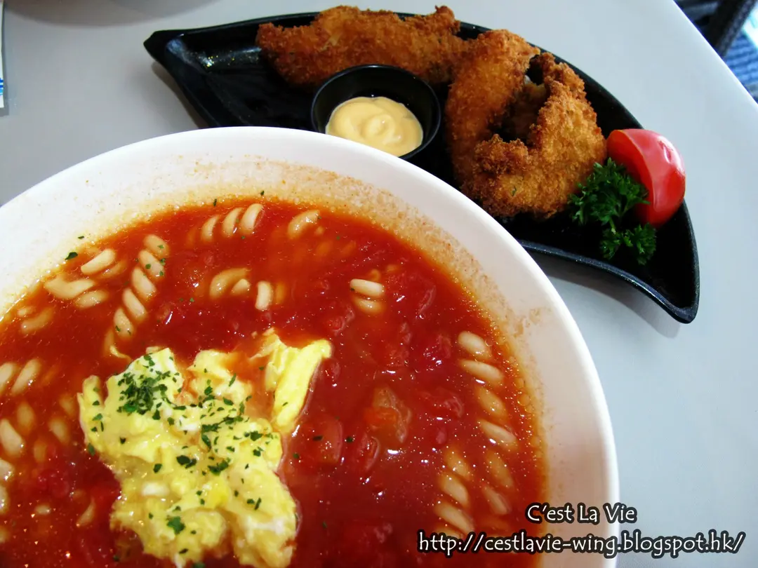 炸魚柳拼滑蛋螺絲粉($43)
