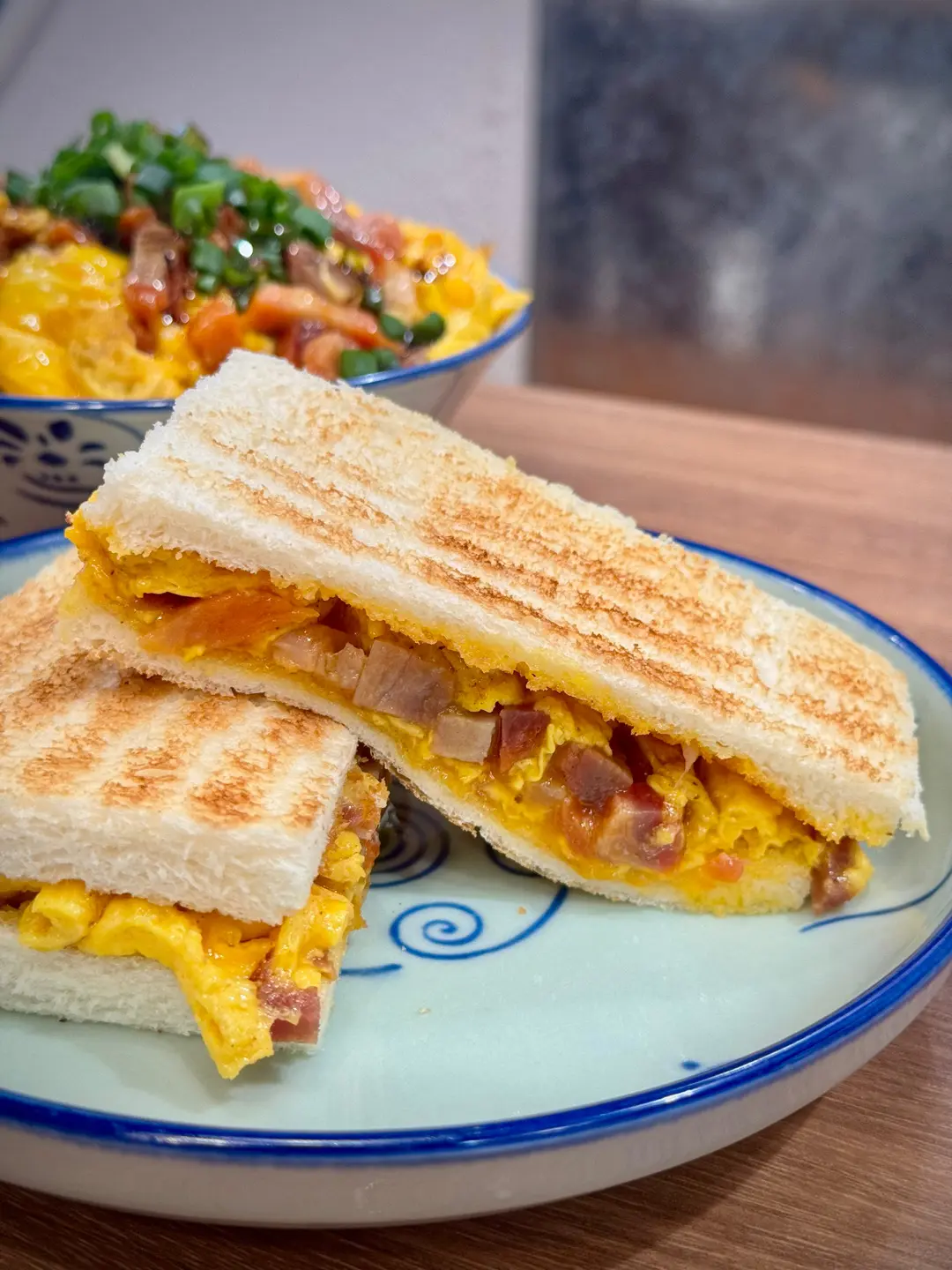 烘底滑蛋叉燒三文治