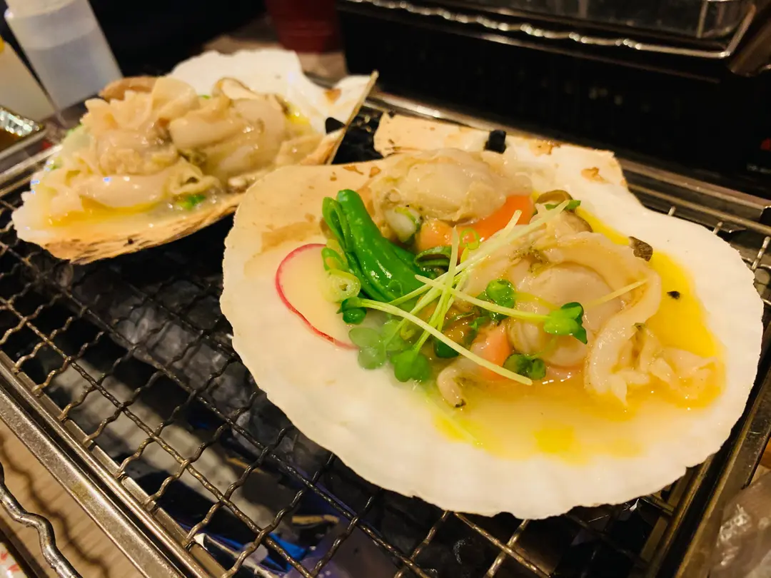海膽帆立貝殻燒,松葉蟹膏帆立貝殼燒