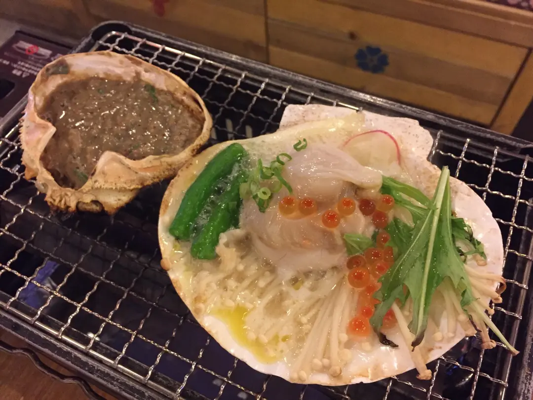 蟹味噌甲羅燒/三文魚子帆立貝燒