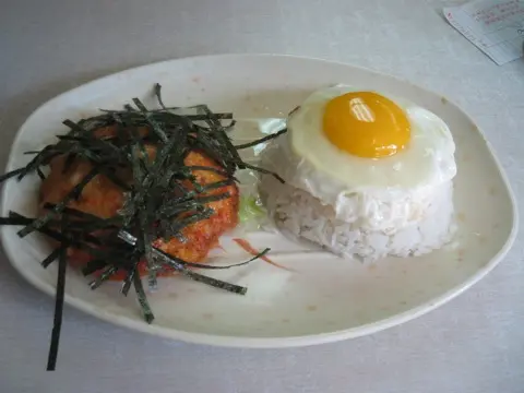 煎蛋海苔窩燒墨魚餅飯