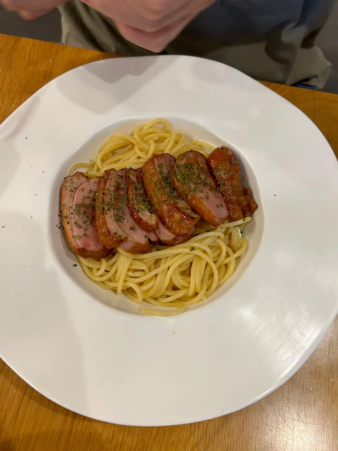 蒜片欖油煙鴨胸香辣意粉 🌶️