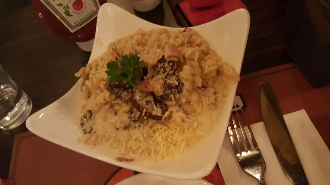 大烤菇煙肉螺絲粉(卡邦尼汁)