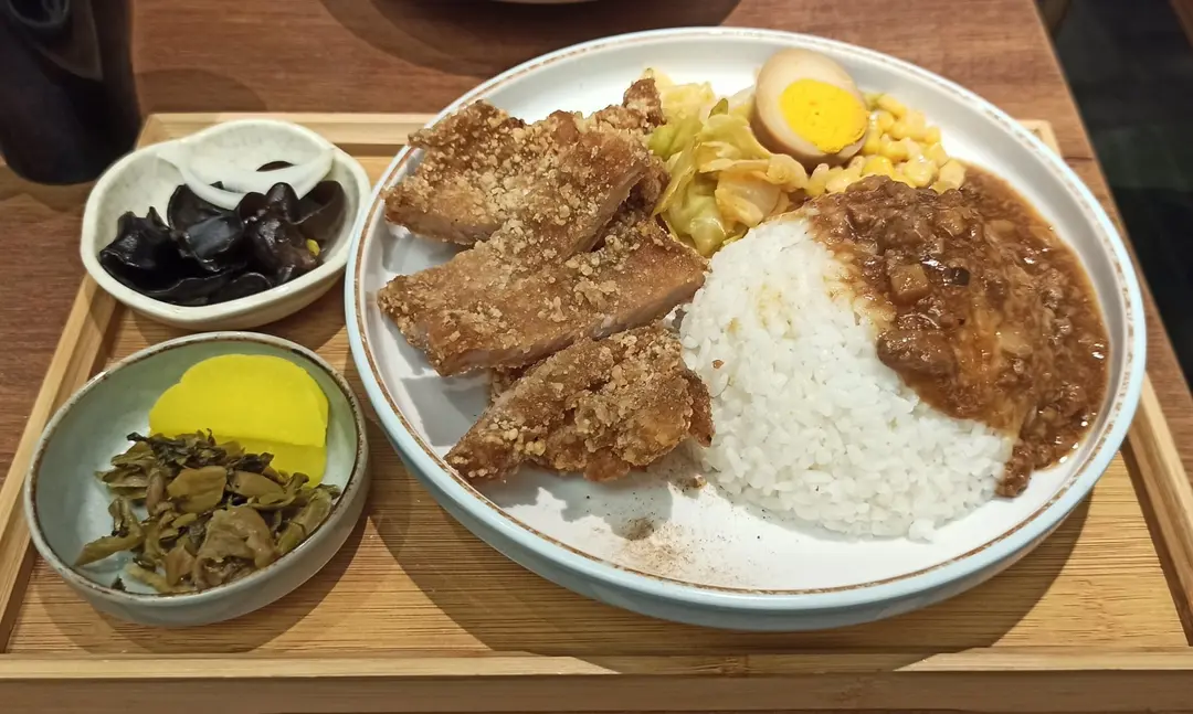 鐵路熱炸大排骨配香菇滷肉飯