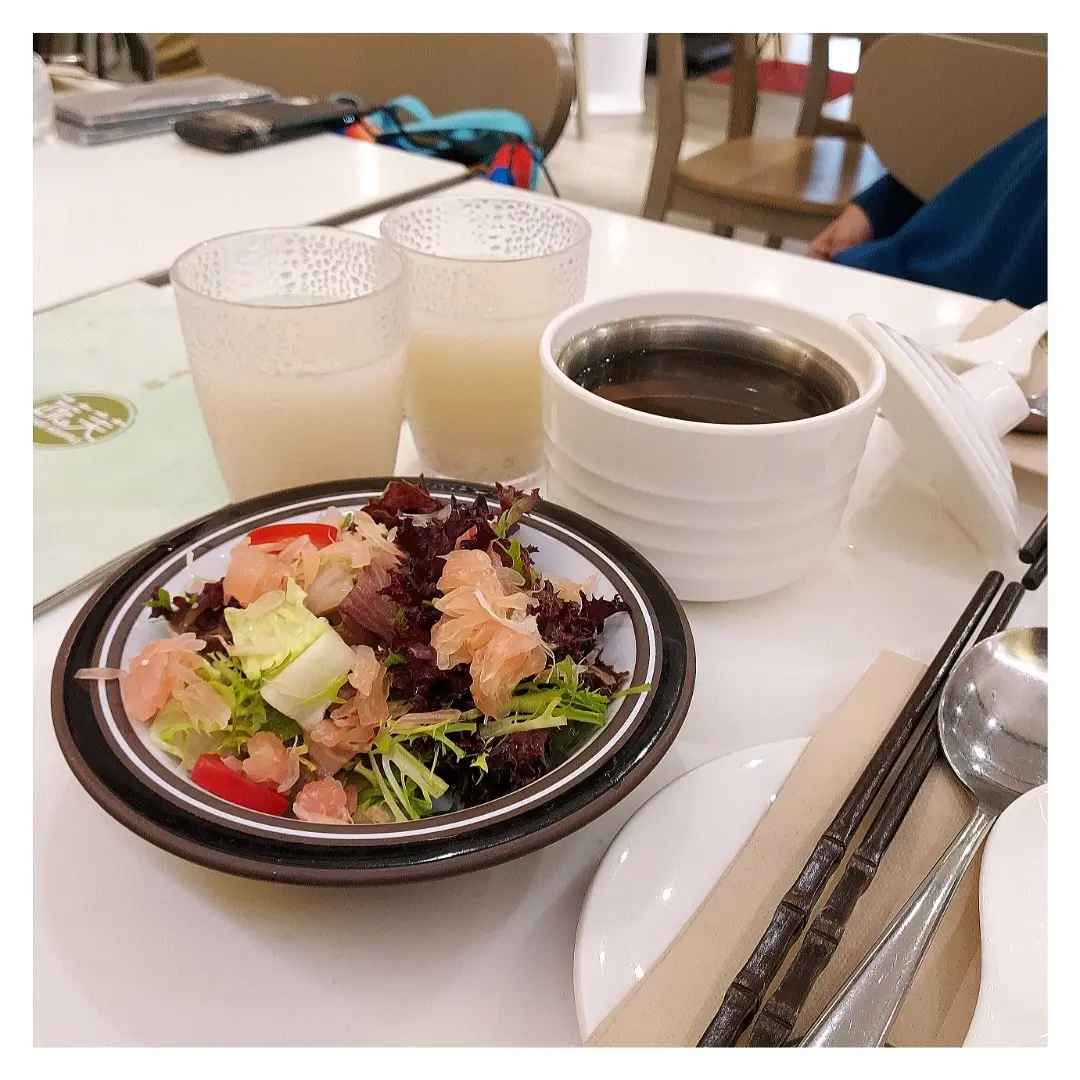 養生燉湯、柚子野菜沙律、腐竹薏米水