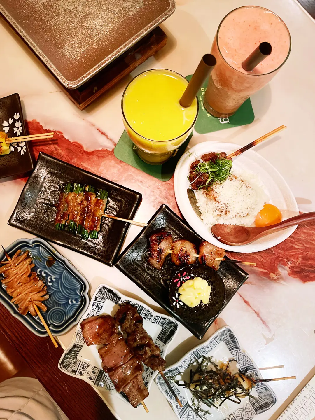 韭菜花卷、和牛棒、豬頸肉、牛舌拖羅