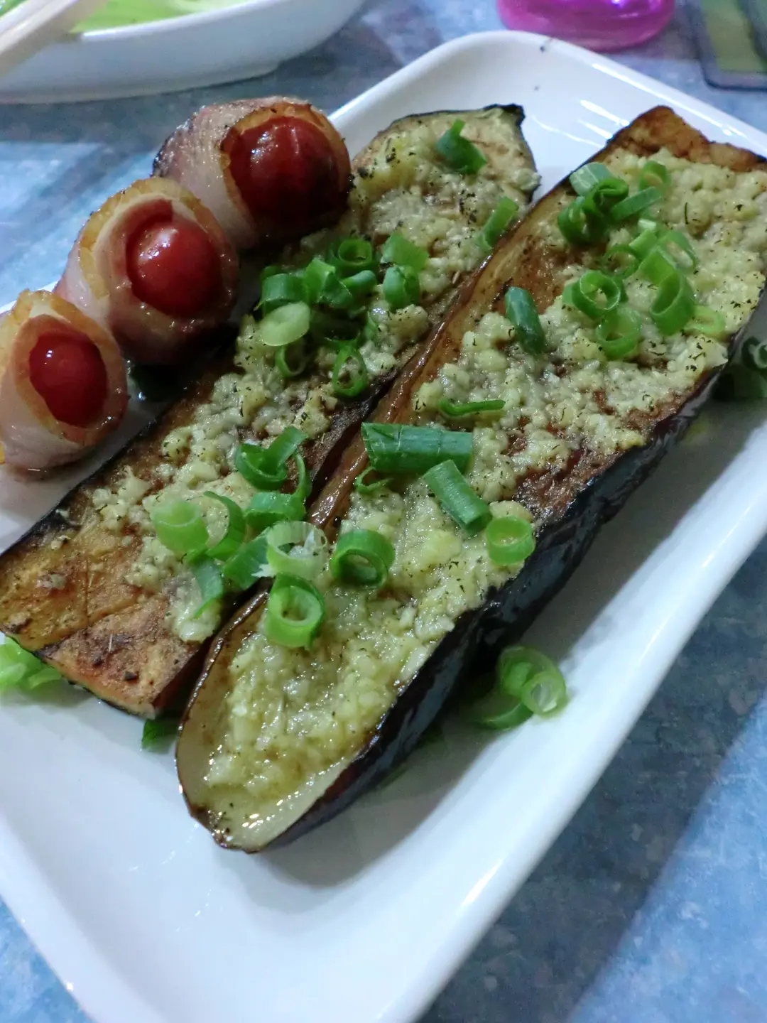 燒車厘茄煙肉卷+蒜蓉燒茄子