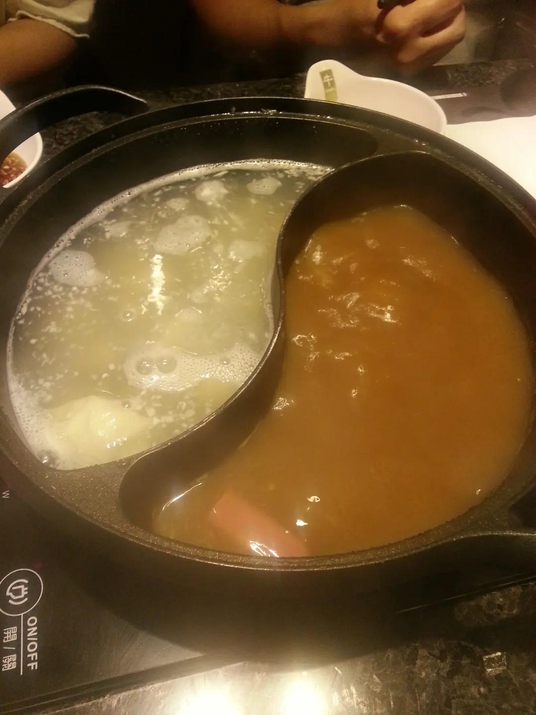 混合湯底 (期間限定的蜆湯x鮮茄濃蝦湯)