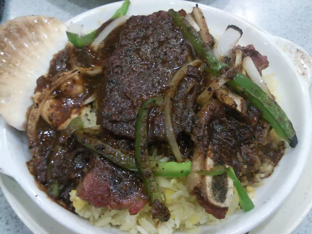 牛仔骨+扇貝配黑椒汁焗飯