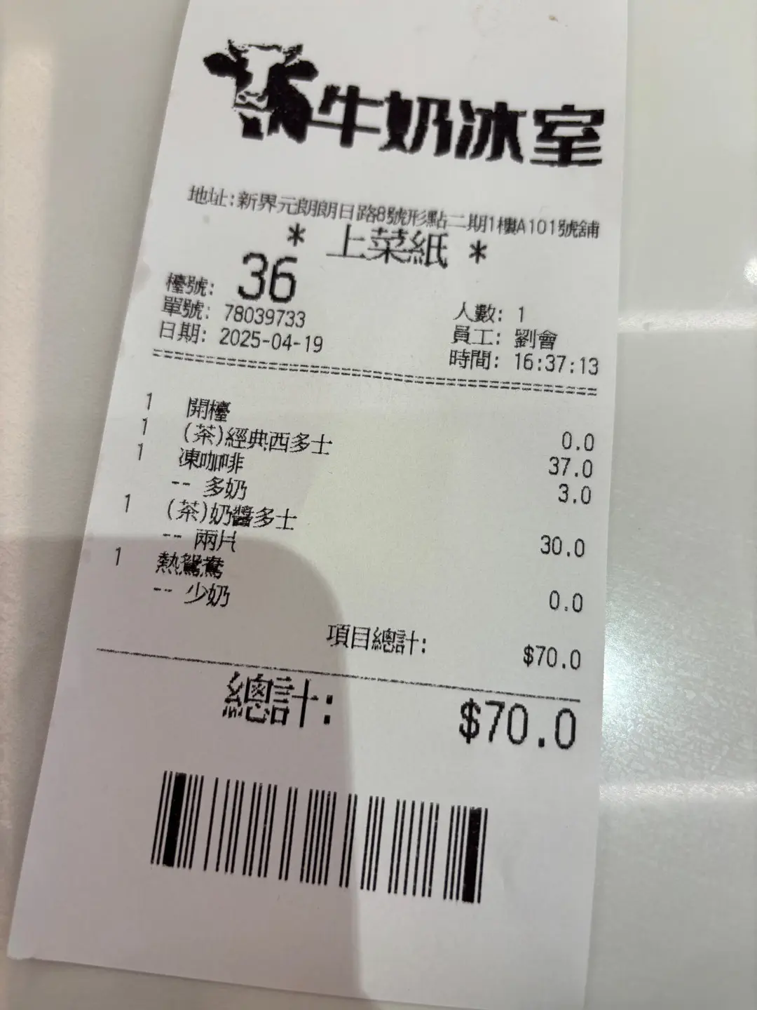 | 餐廳: | 牛奶冰室 (形點 II) |
