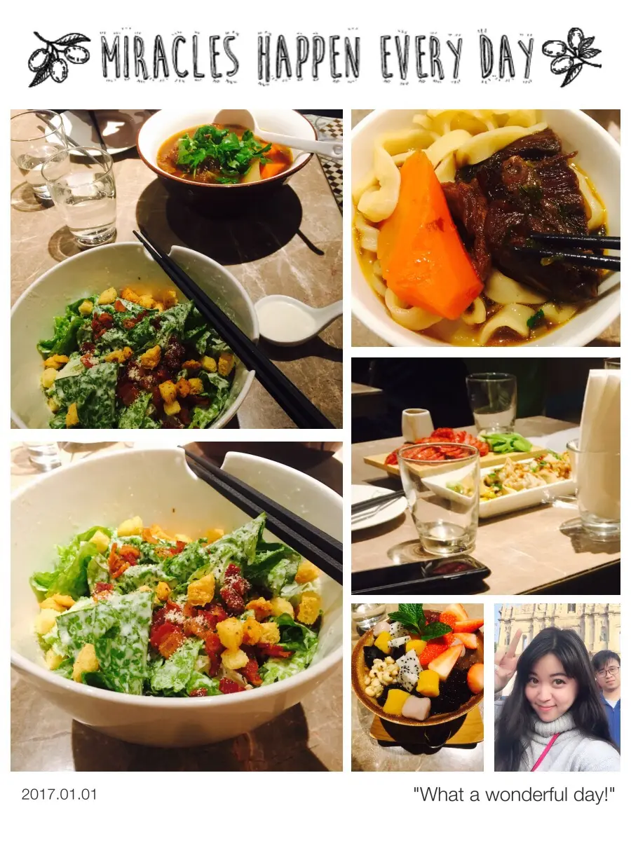 凱撒沙律,牛腩麵,甜品
