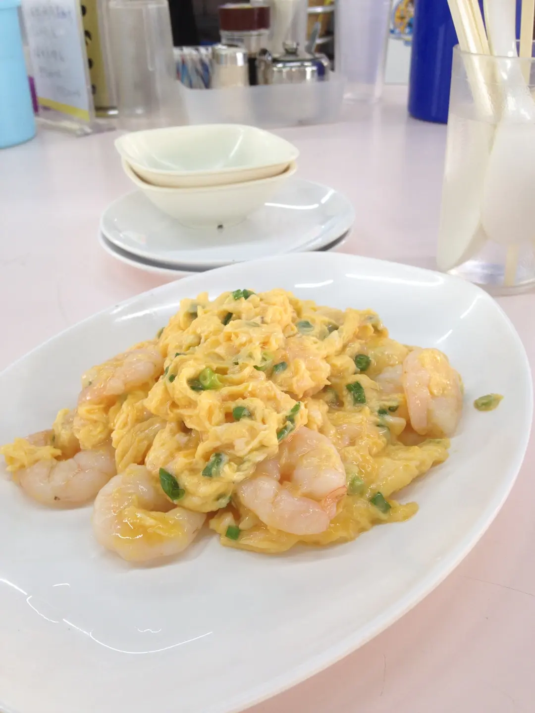 scramble egg w big prawns