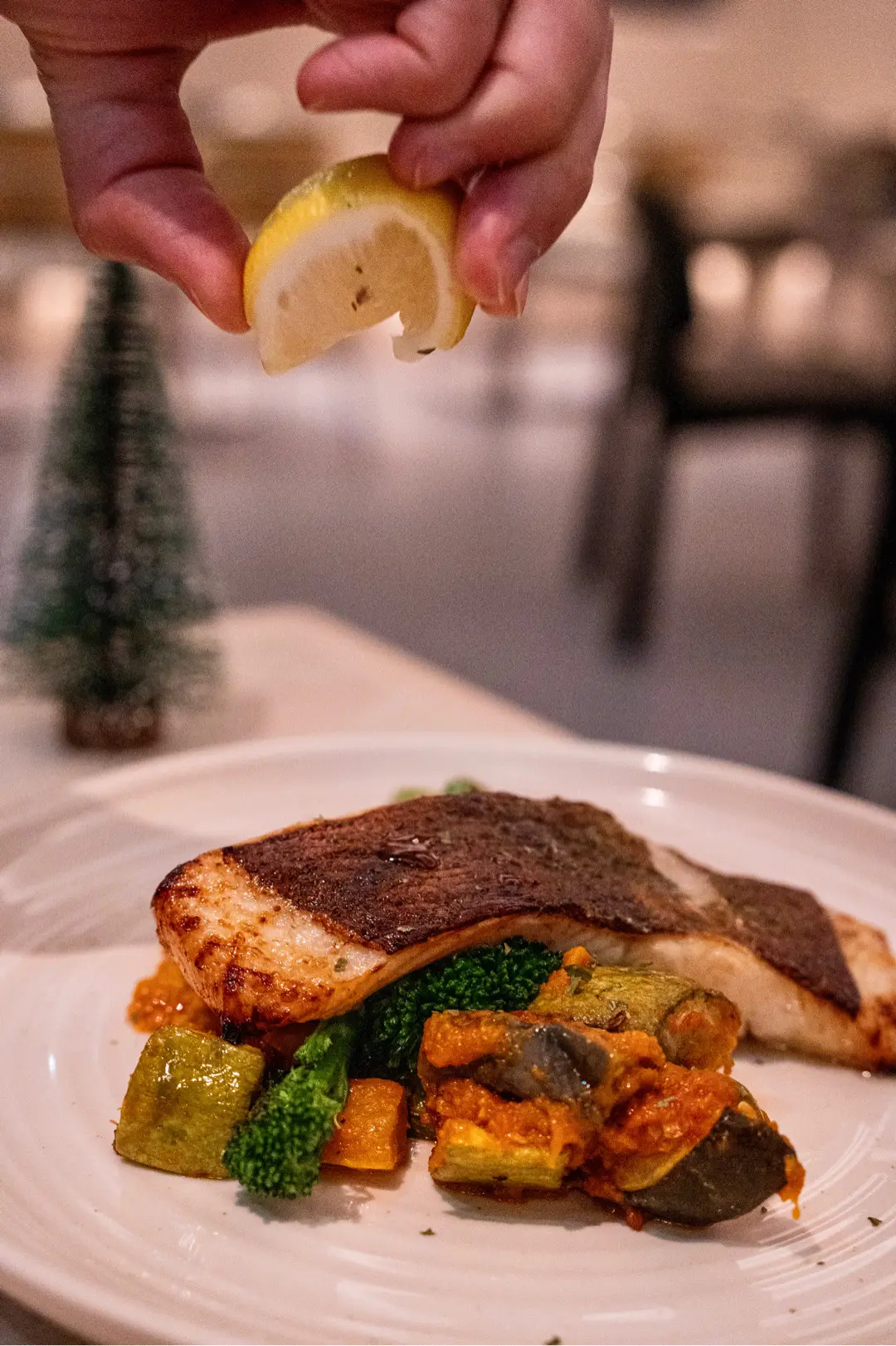 鹽麴燒比目魚伴烤澳洲西蘭花普羅旺斯燉菜