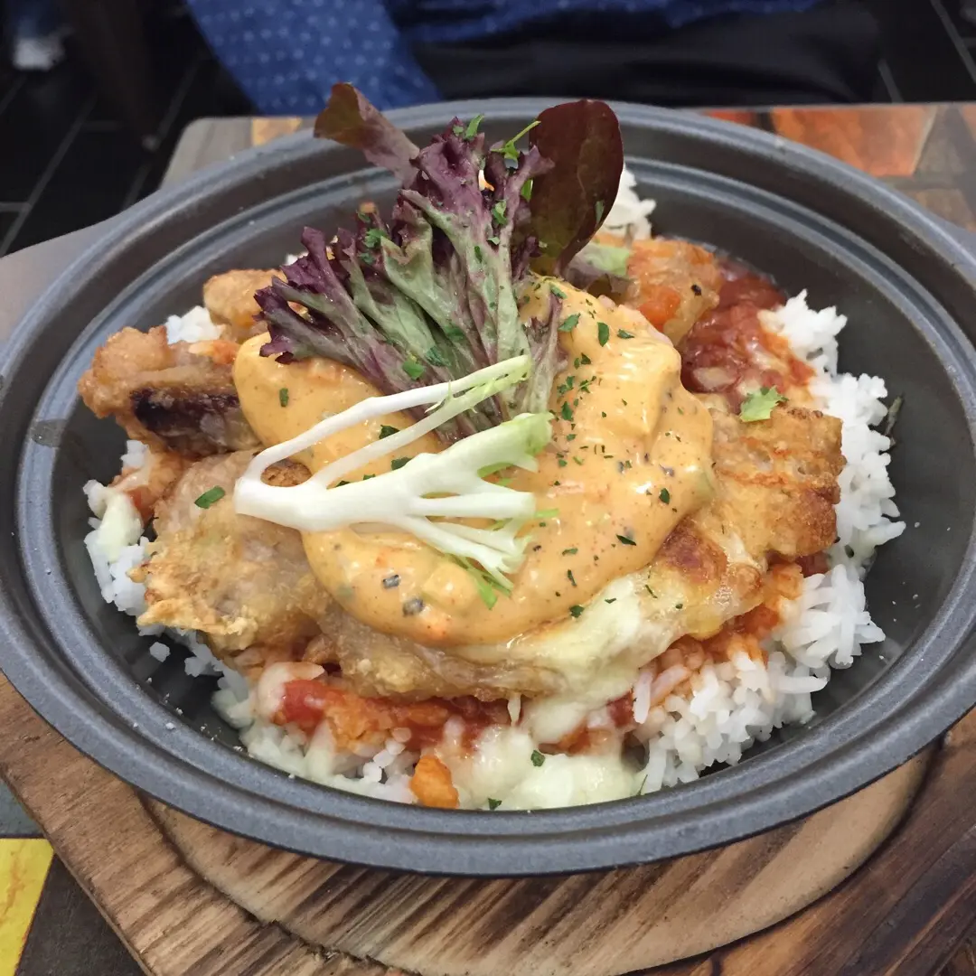芝士西西里蕃茄茸焗邪惡流心夾心豬扒飯