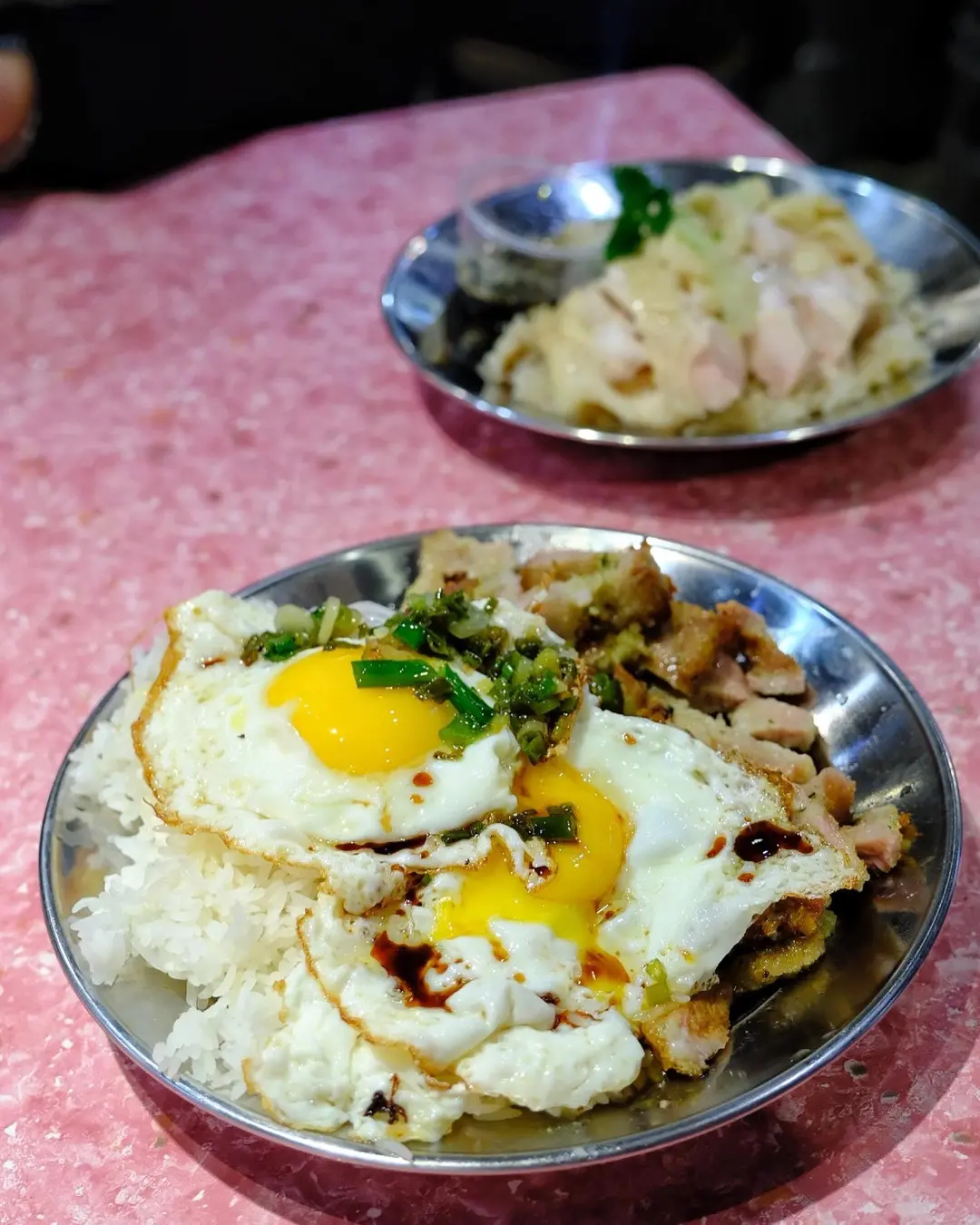 頭抽蔥油豬扒煎雙蛋飯