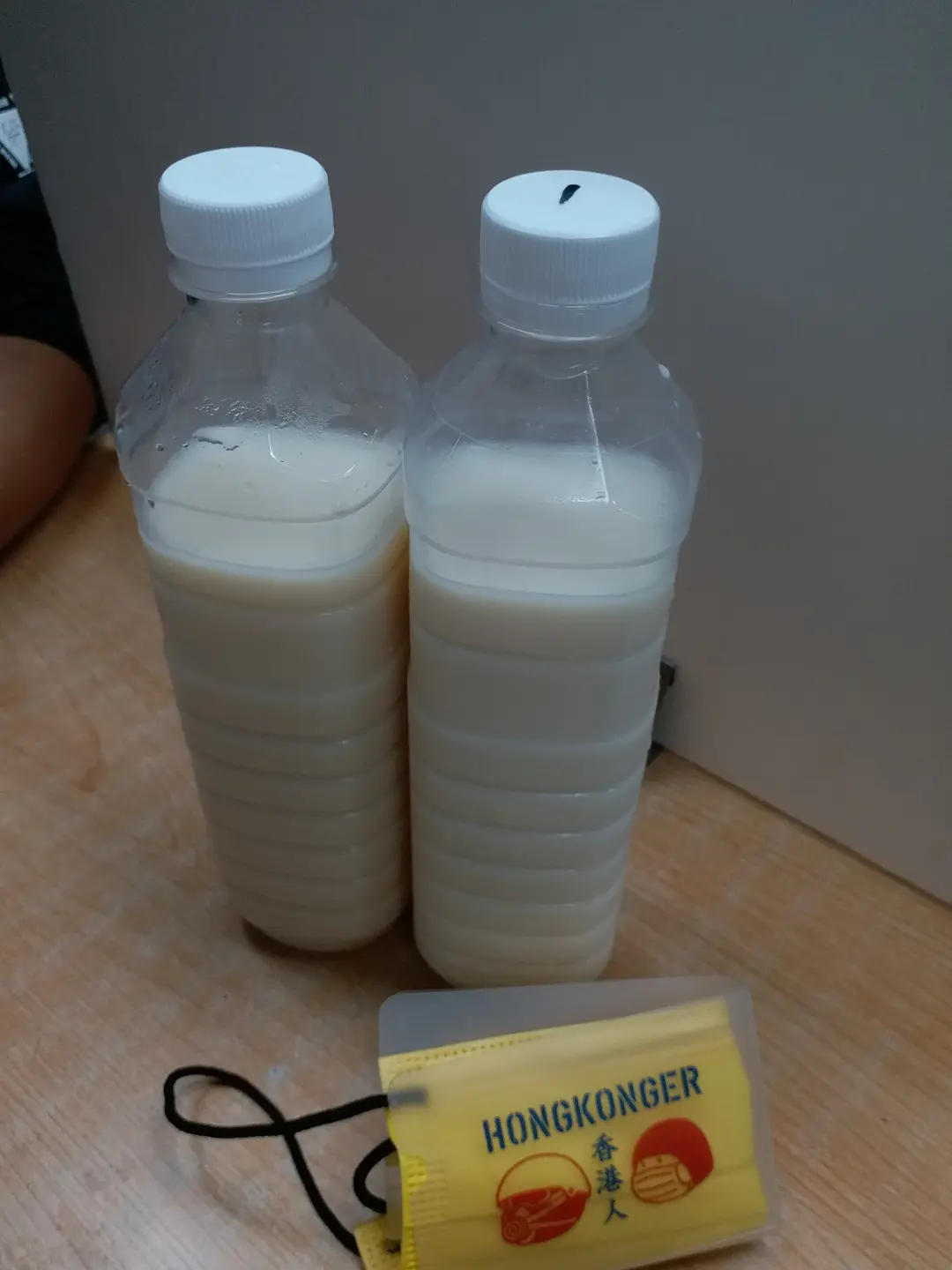 左: 有糖豆漿, 右:冇糖豆漿
