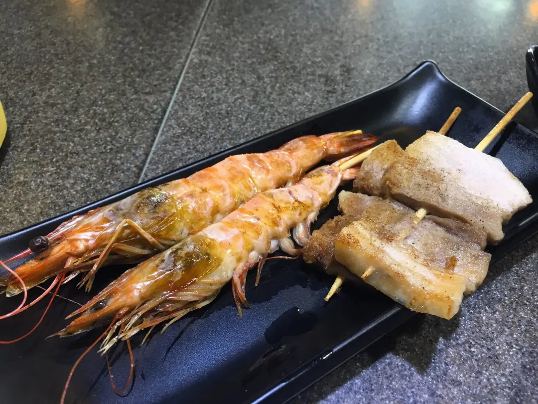 鹽燒海老串及鹽燒黑豚肉串