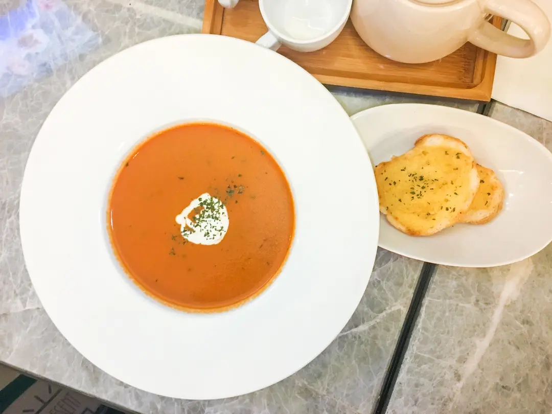 湯、蒜蓉法包