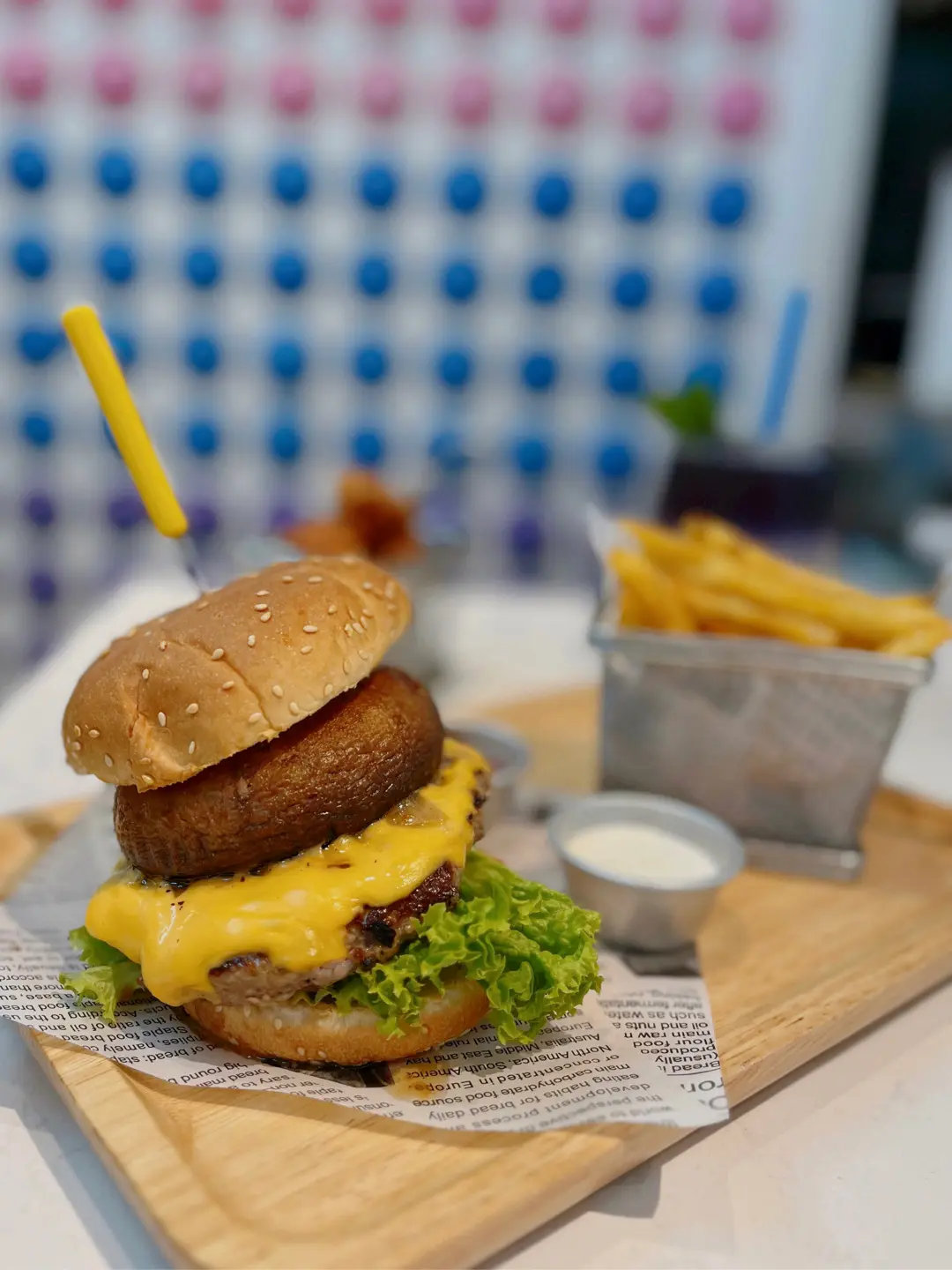 大啡菇牛肉漢堡+薯條