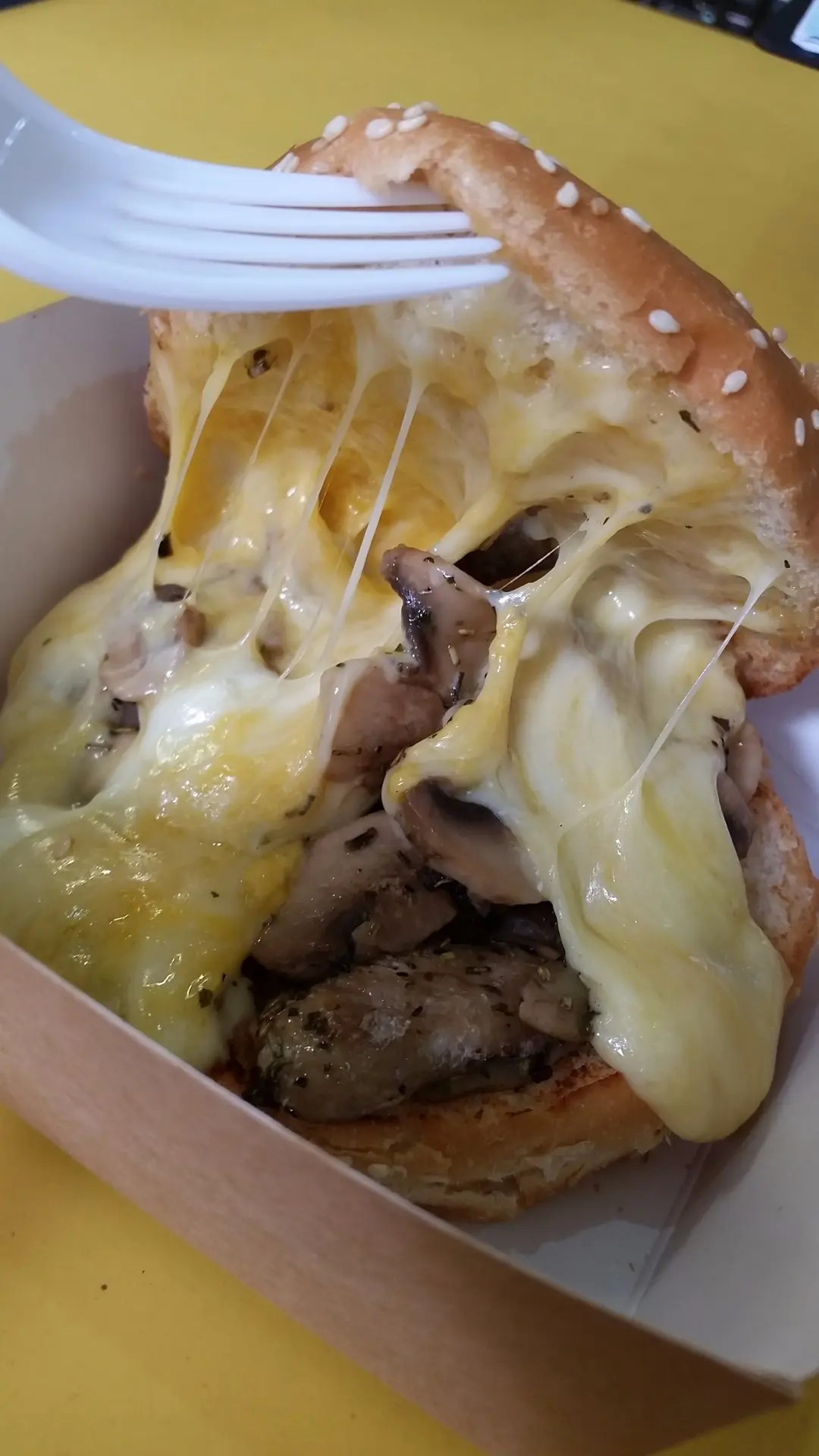 熱熔拉絲芝士炒雜菌漢堡