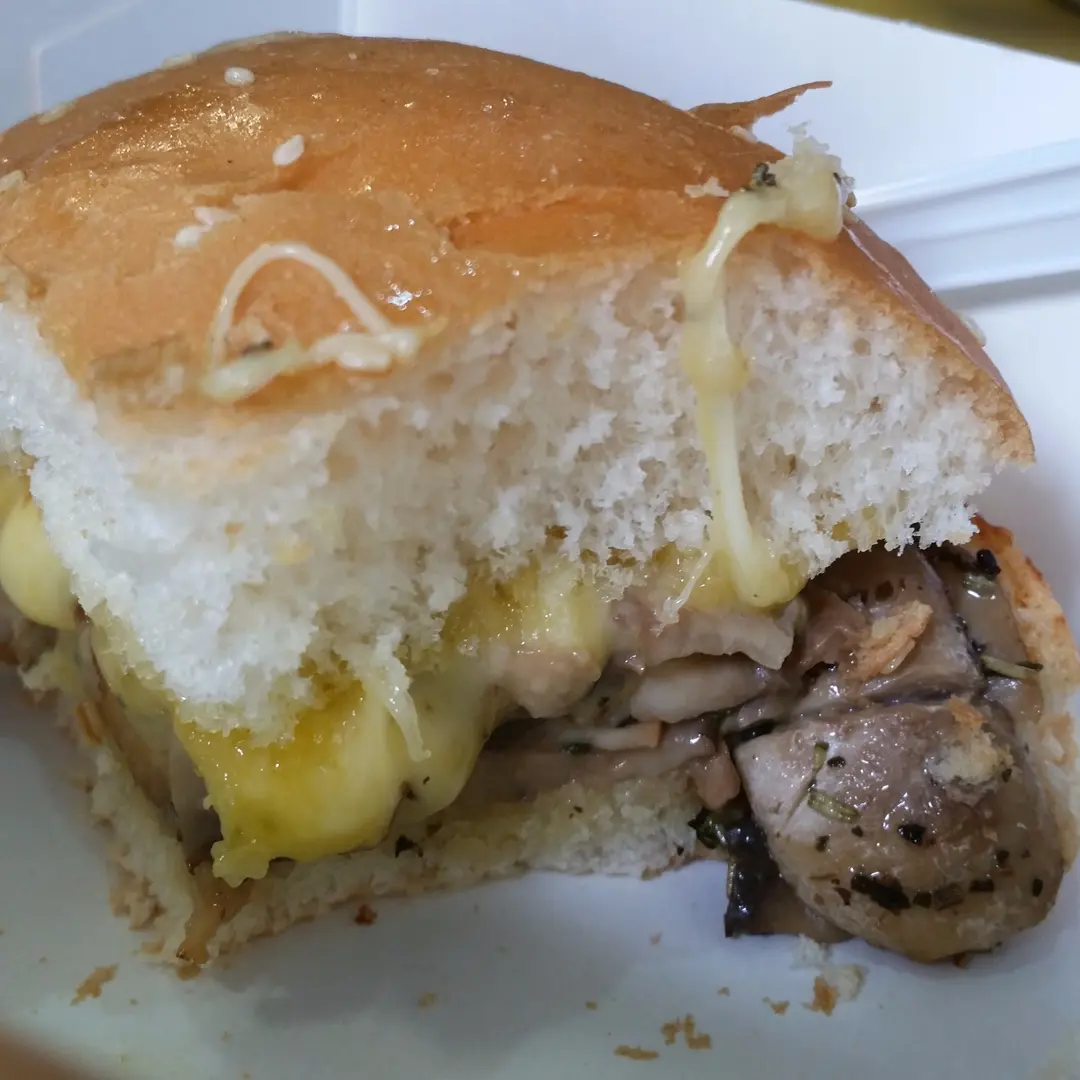 熱熔拉絲芝士炒雜菌漢堡