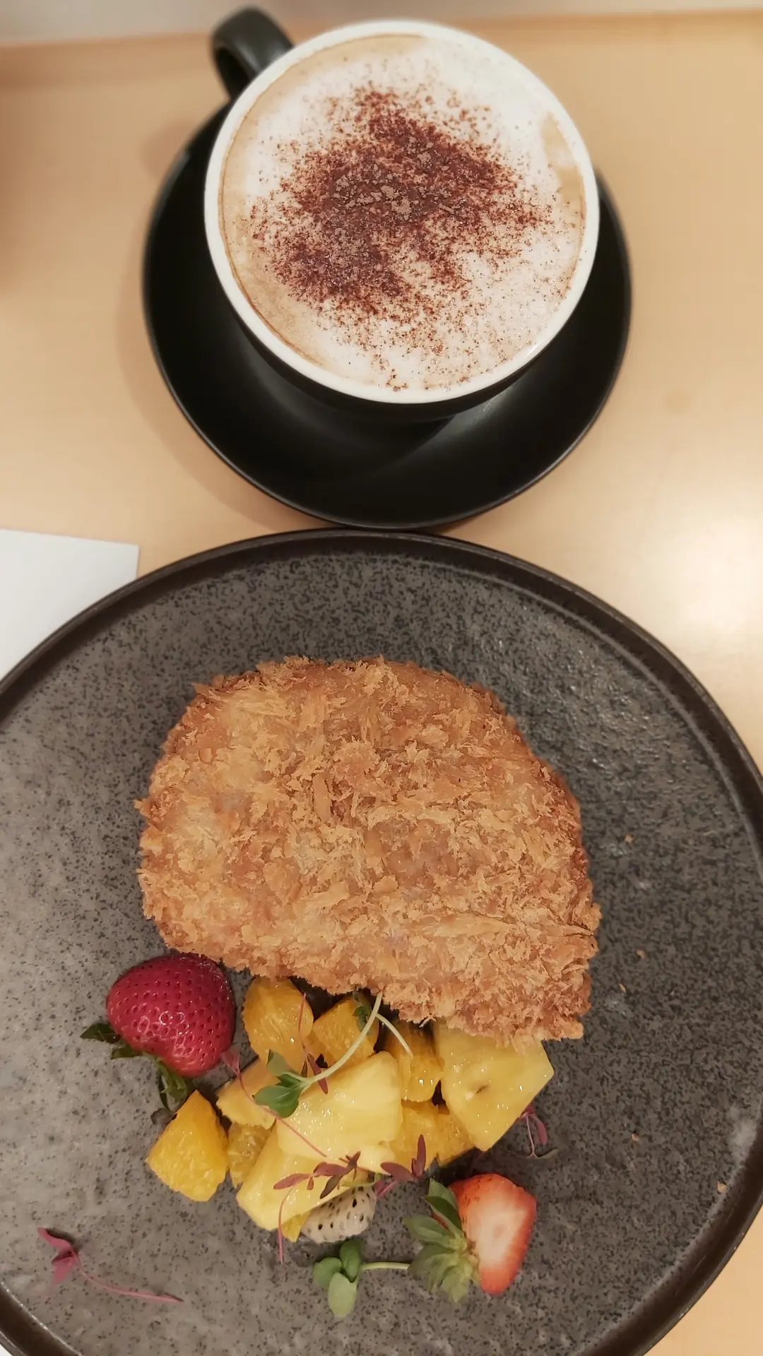 脆脆豬扒配鮮果沙律&鮮奶泡沫咖啡
