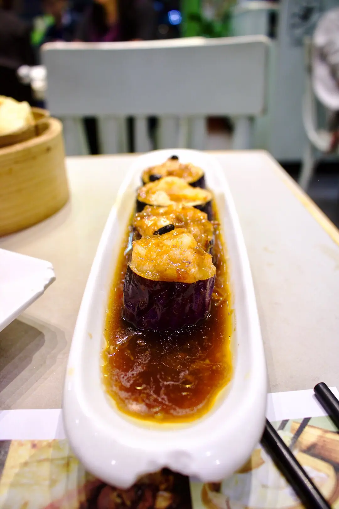 Pan fried eggplant with teriyaki sauce