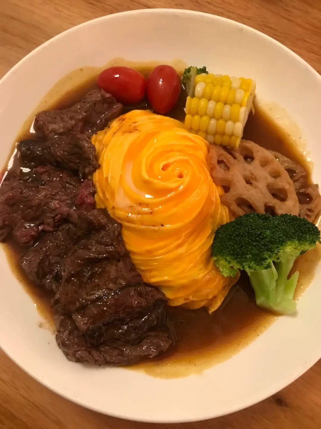 烤牛柳腰,旋風炒蛋,日式咖哩汁,十六殼米飯