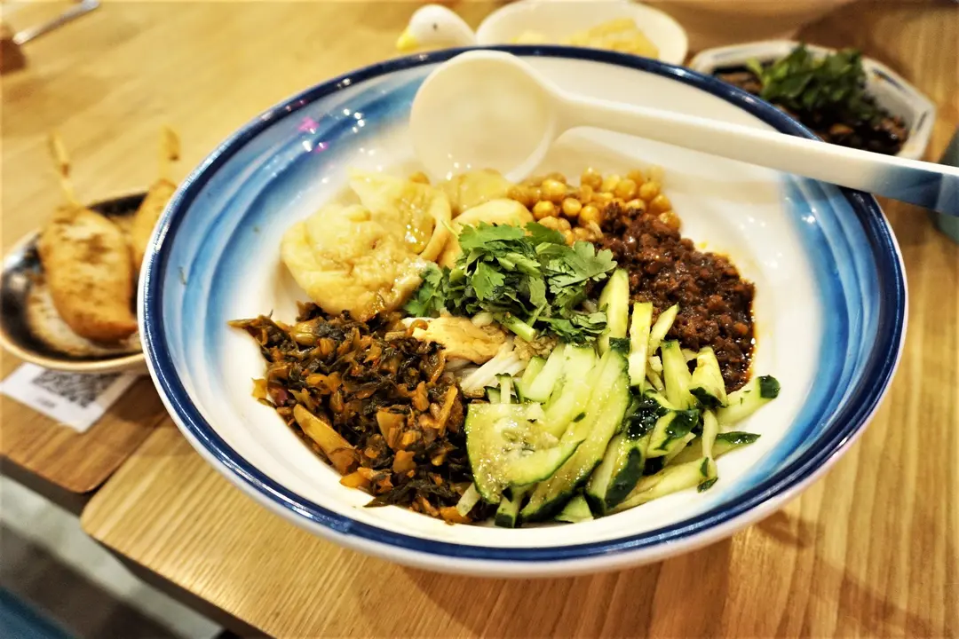 秘製涼拌米線 + 魚腐、孜然免治雞肉棒