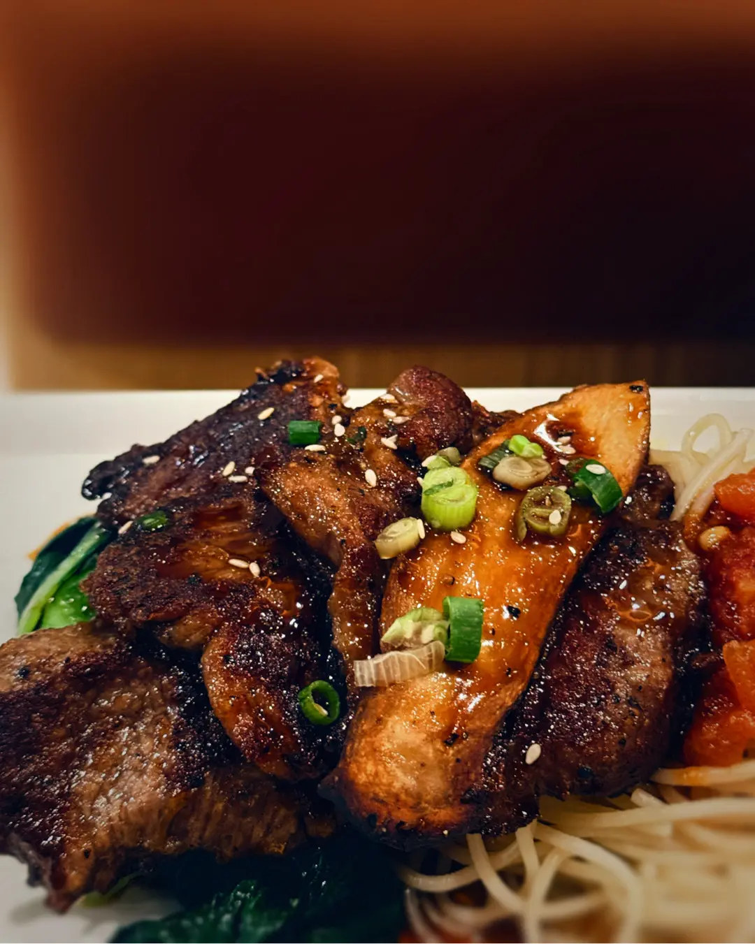 日式蔥燒牛柳 伴鹽燒雞髀菇意粉
