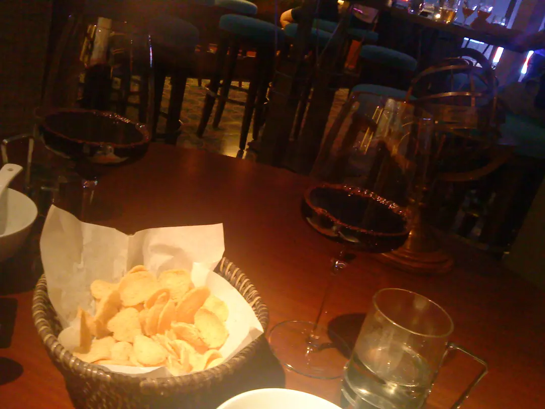 紅酒配以蝦片