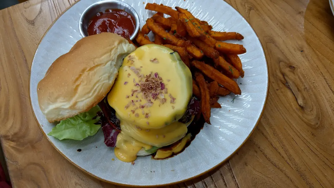 玫瑰照燒汁芝士大啡菇漢堡