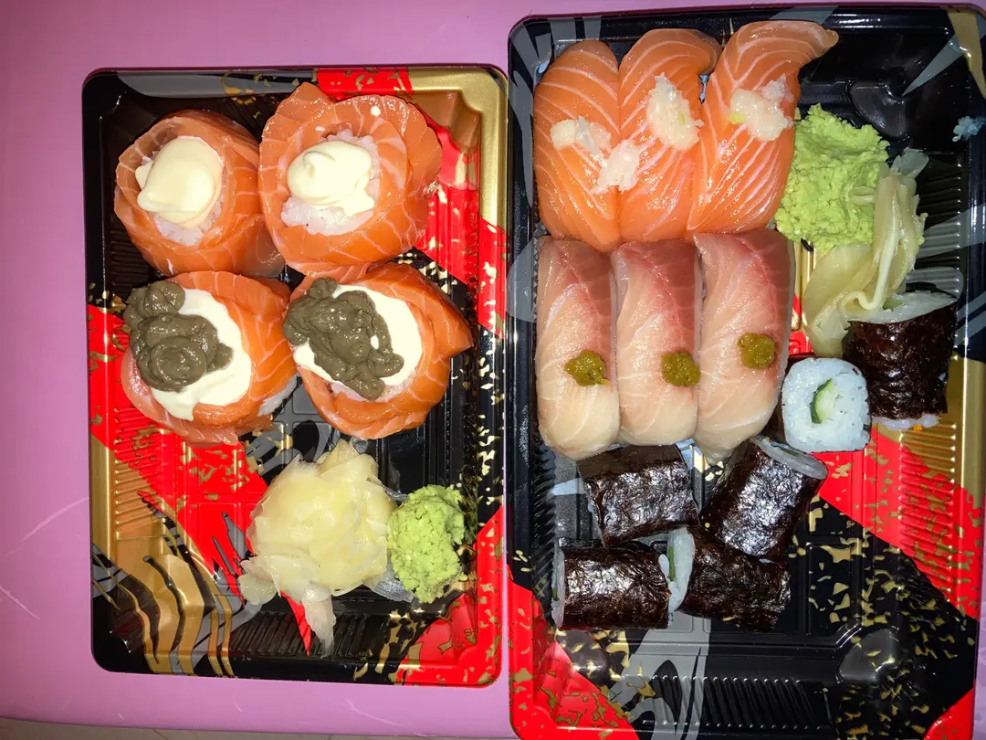 外賣三文魚油甘魚盛合、花之戀×2、蟹膏花之戀×2