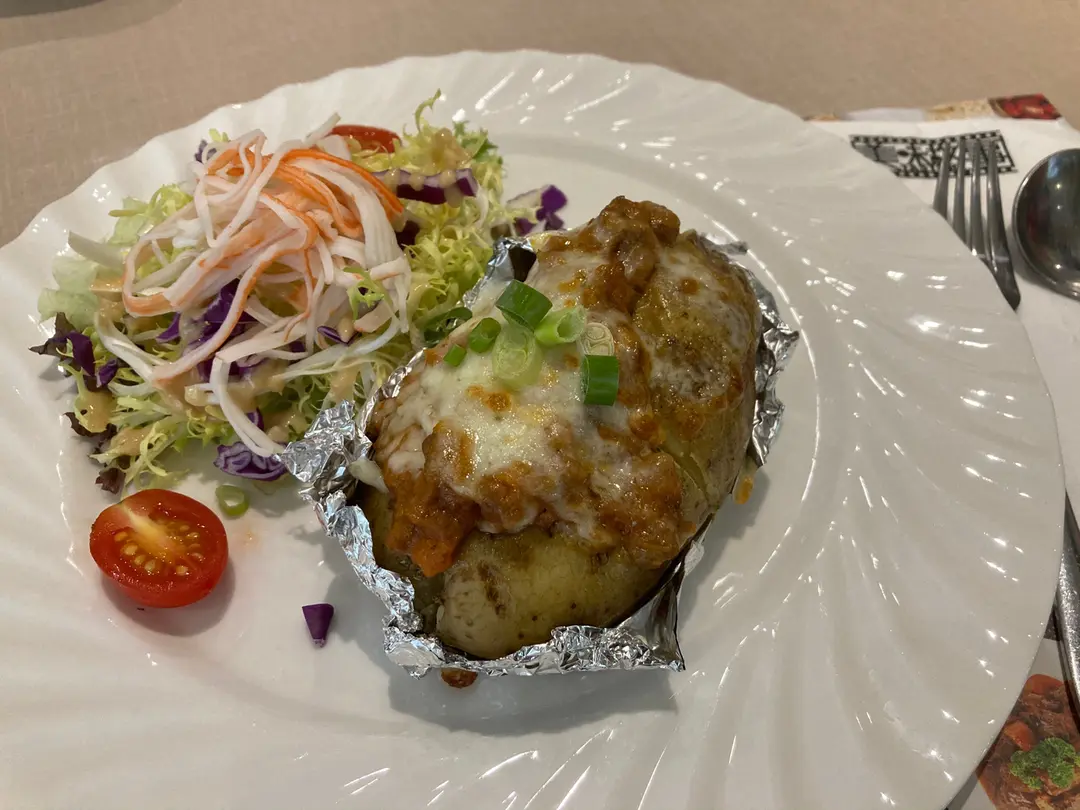 芝士肉醬焗薯+蟹柳沙律