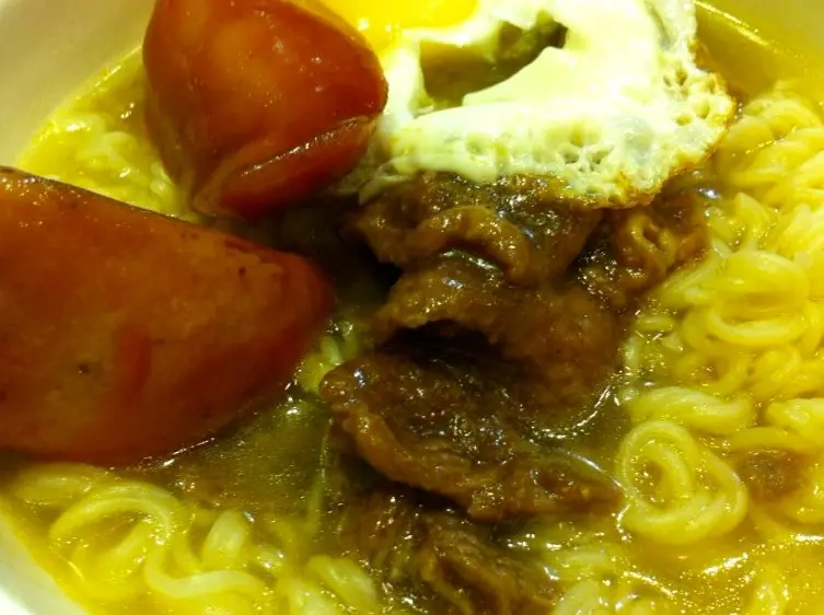 太陽蛋茄汁司華力腸沙嗲牛肉即食麵