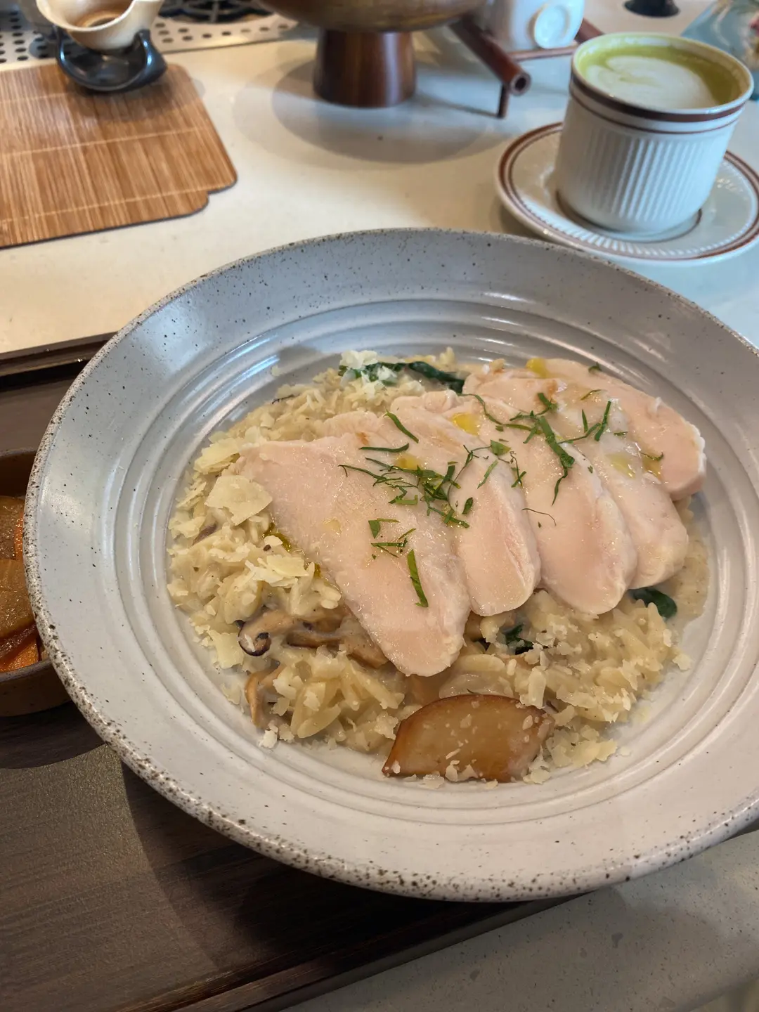 菠菜野菌米型意粉香煎雞胸