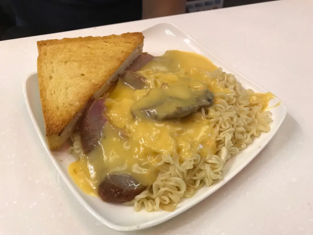 芝士豬頸肉撈丁跟牛油多士