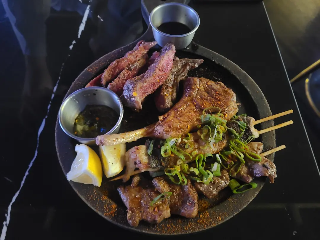 炭燒牛板腱, 燒羊架, 招牌無骨白鱔串, 鹽燒牛舌心