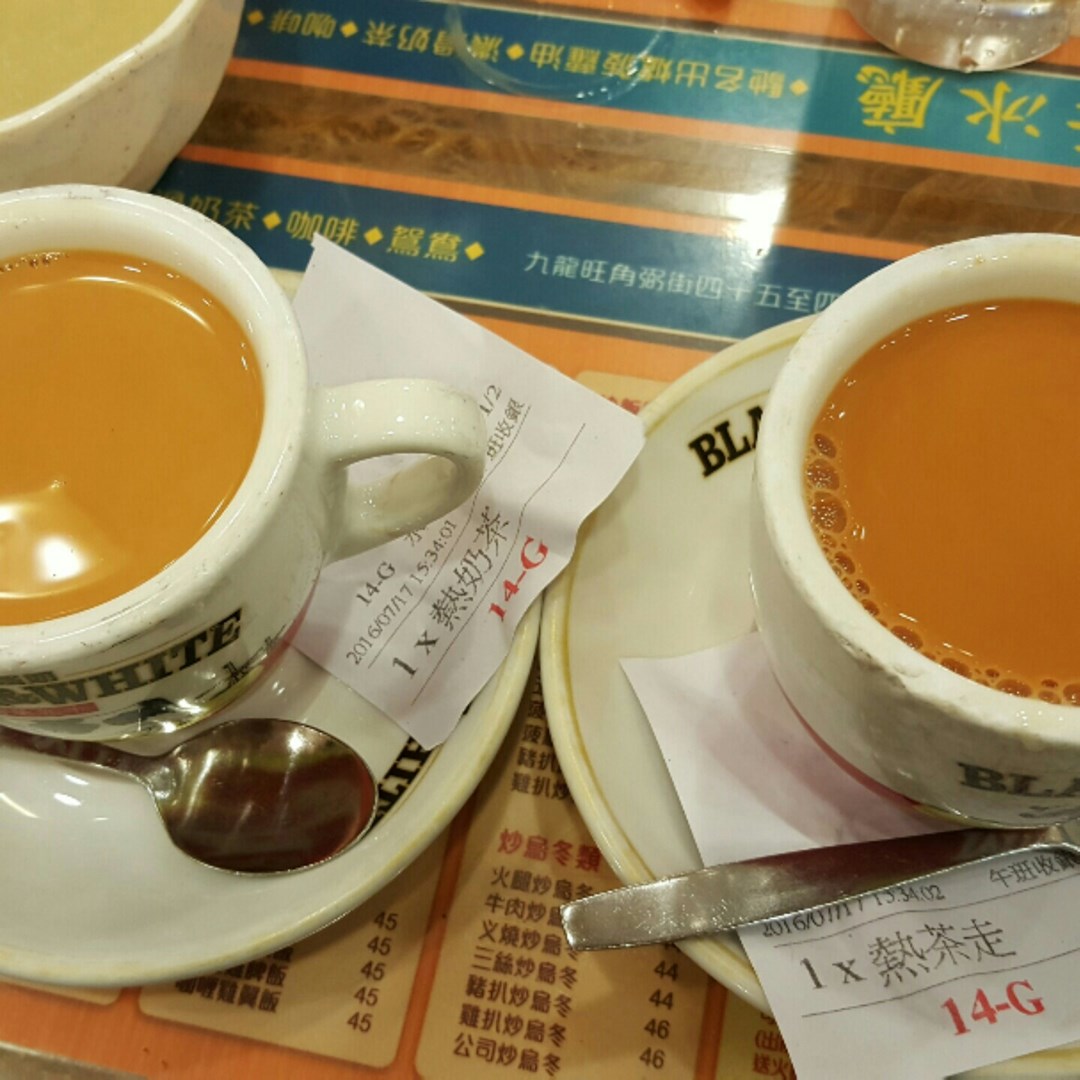 左: 奶茶。右: 茶走