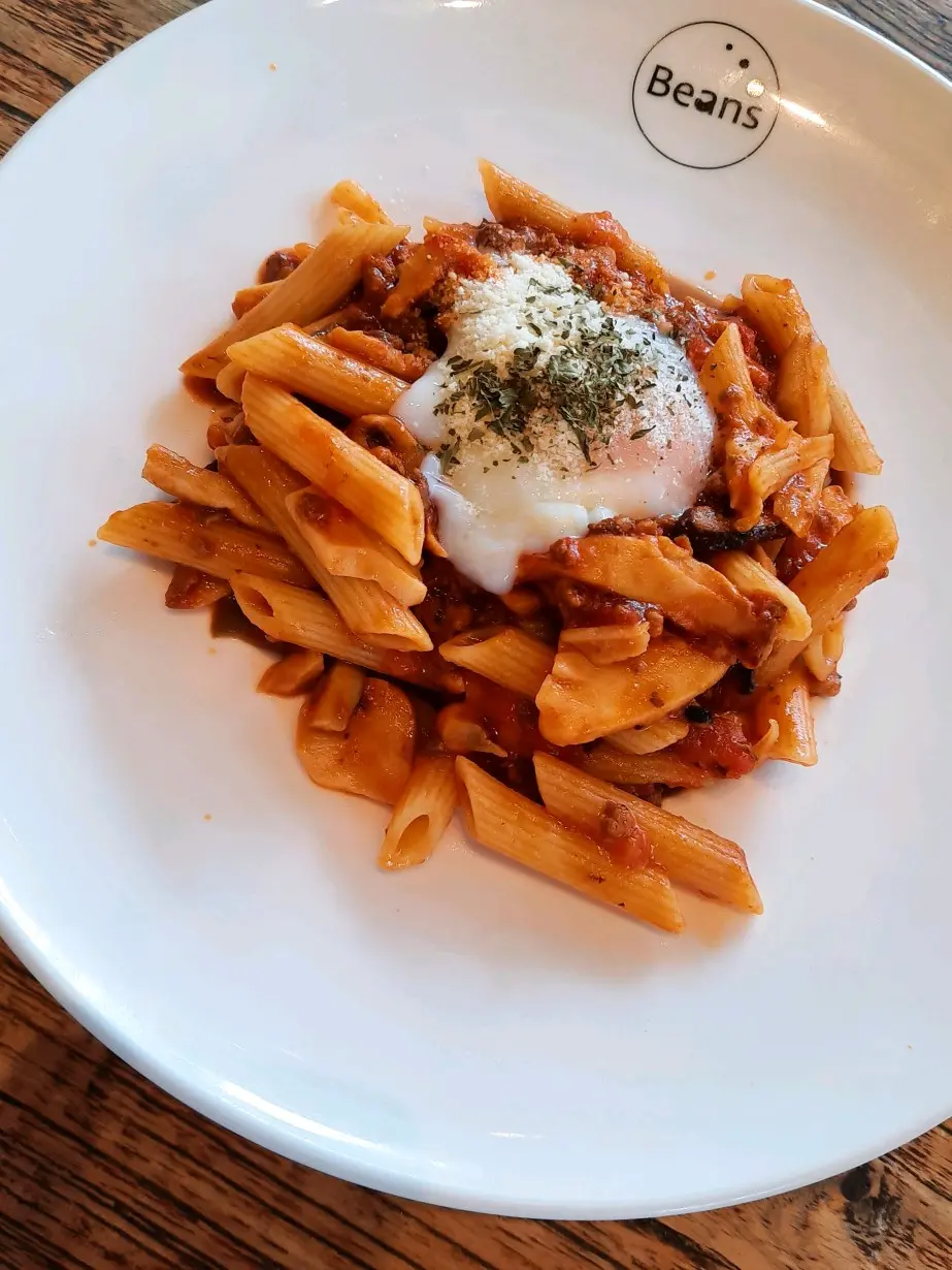 蕃茄肉醬溫泉蛋長通粉