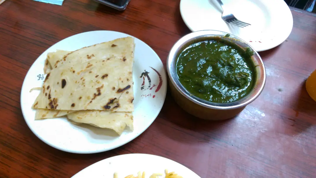 菠菜咖哩牛配薄餅