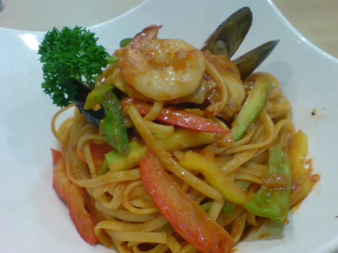 蒜蓉番茄汁海鮮扁意粉