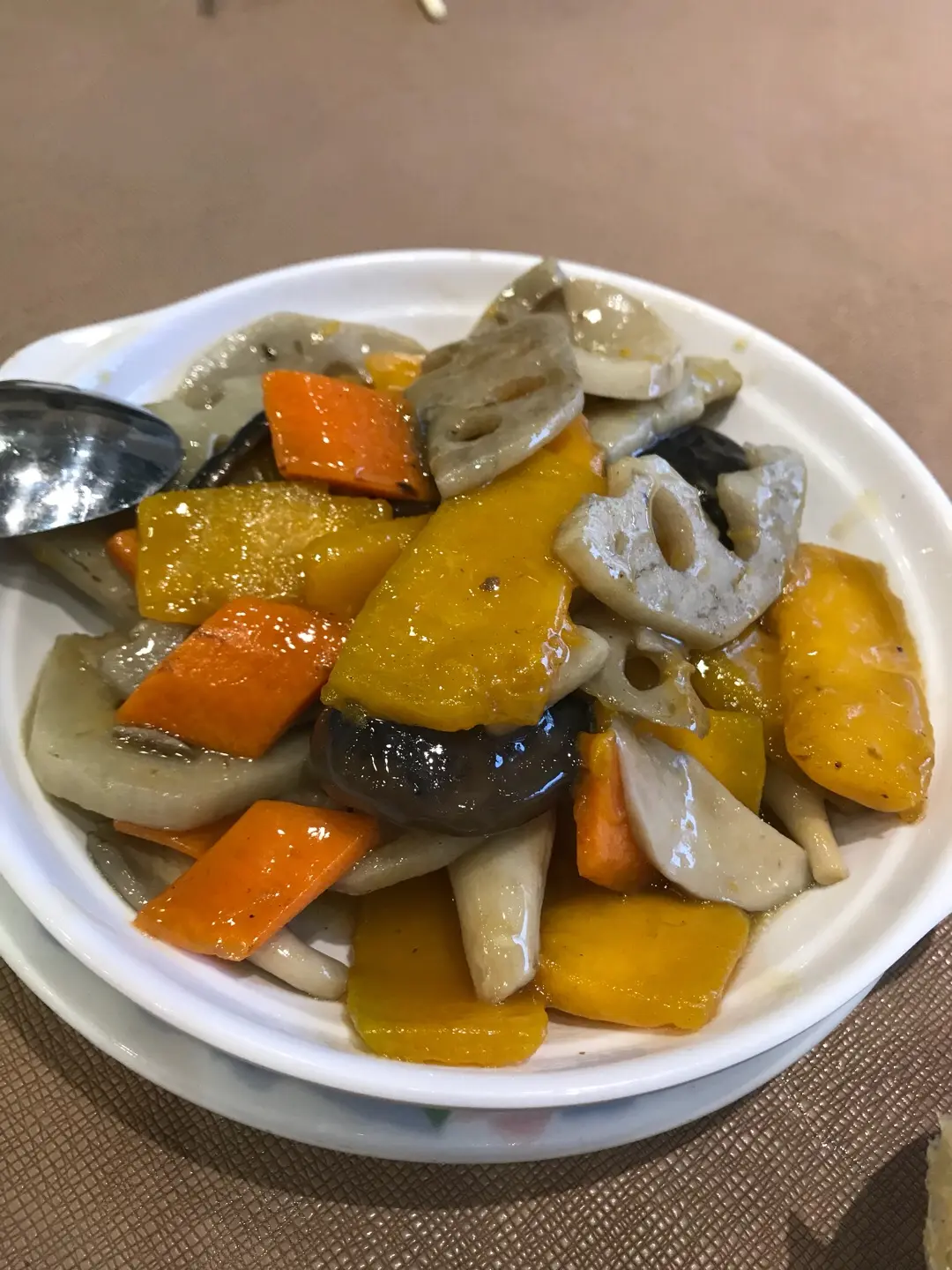 午餐。南瓜炒藕片什菌