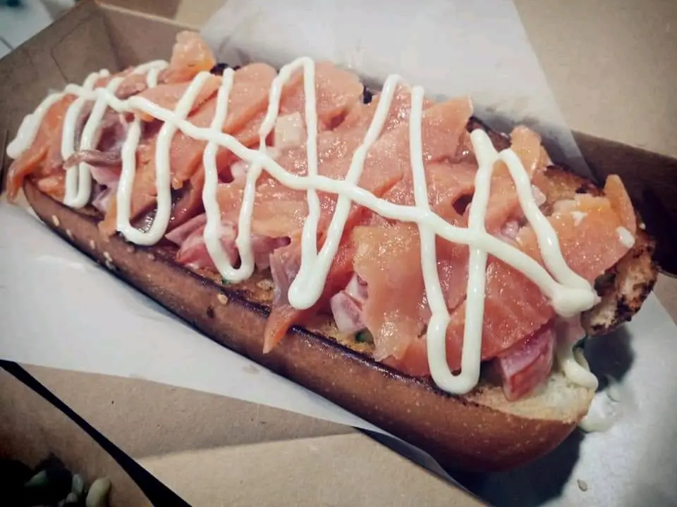 芥末沙律三文魚熱狗