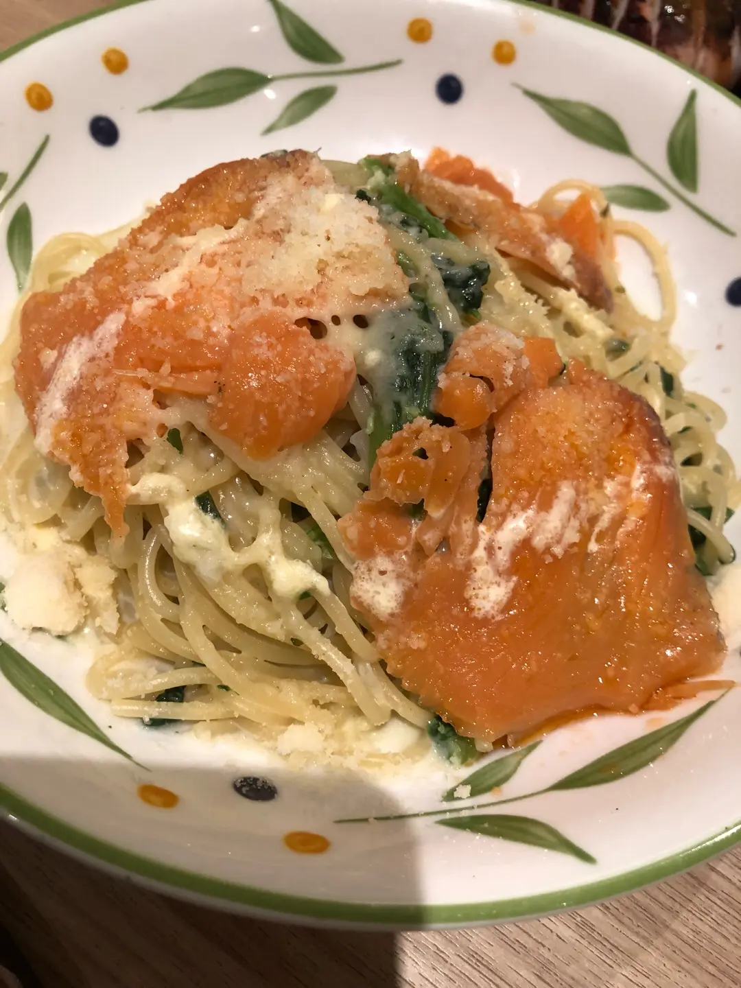菠菜配煙三文魚忌廉義大利麵