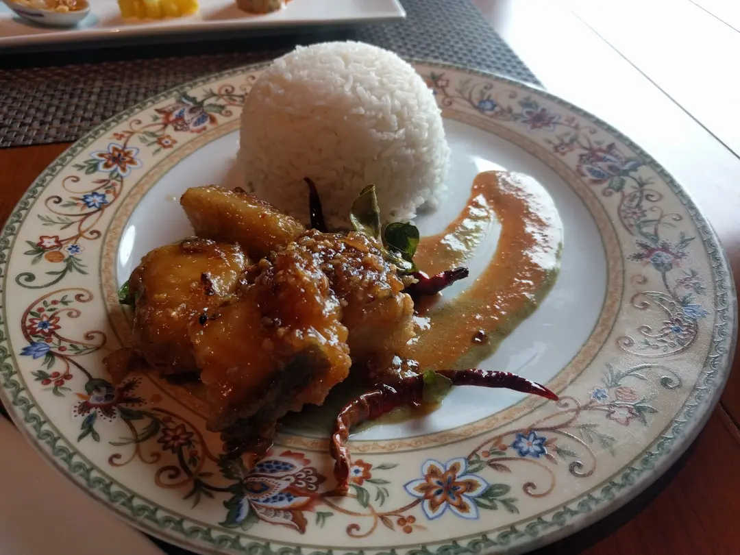 泰式鴛鴦咖哩脆皮鱈魚柳配茉莉香米