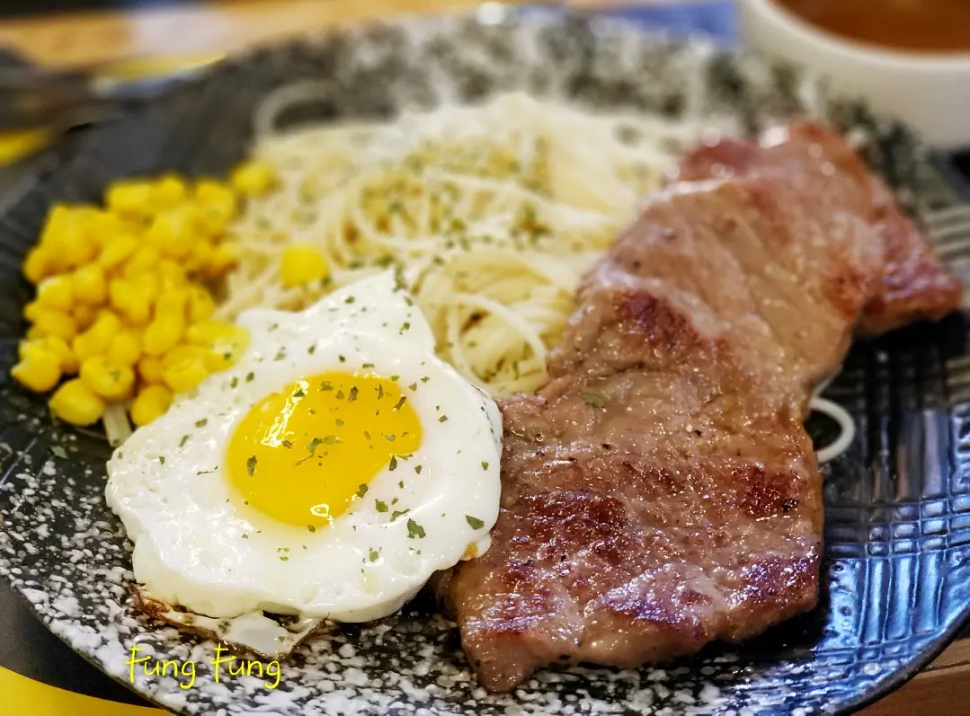 黑椒牛排煎蛋意粉