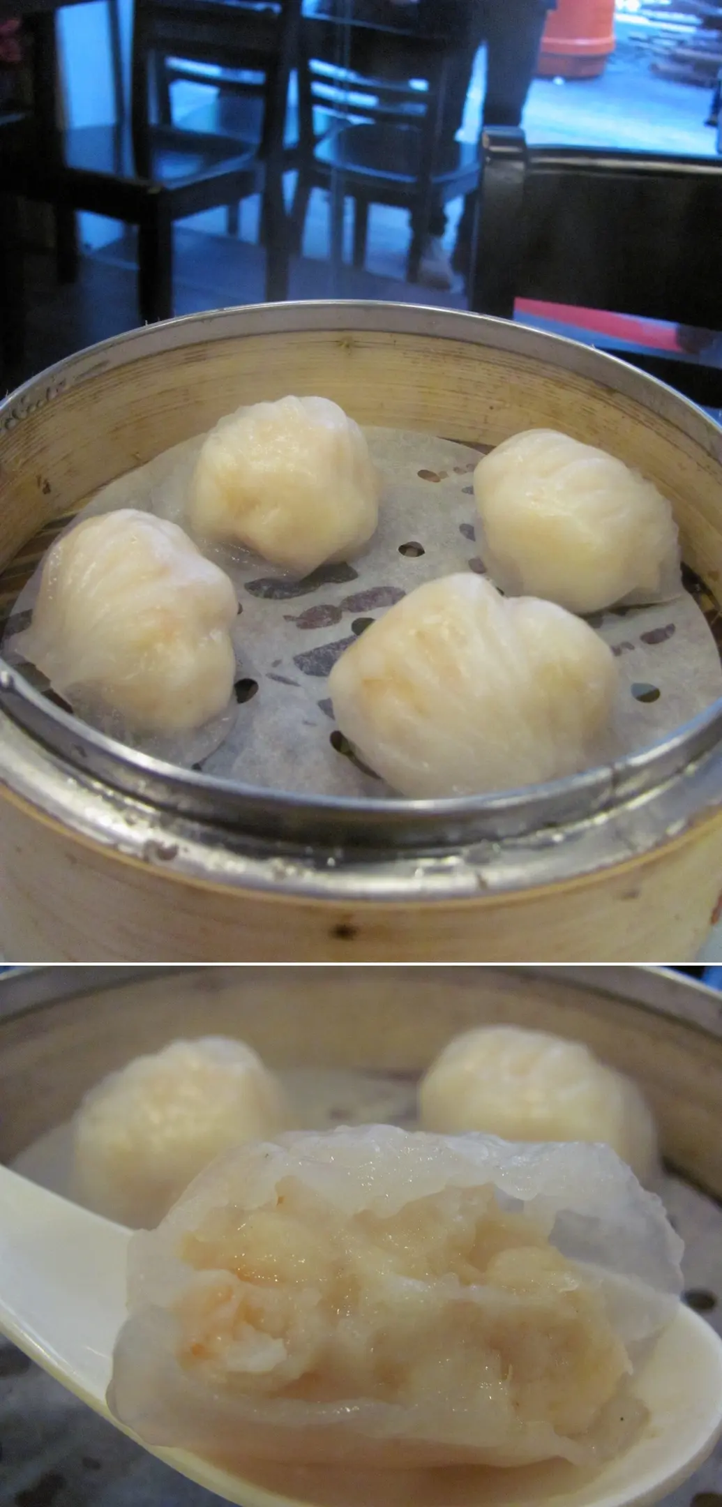 蝦餃皮軟嫩得來又甚有彈性,餡是蝦仁及蝦膠的混合體