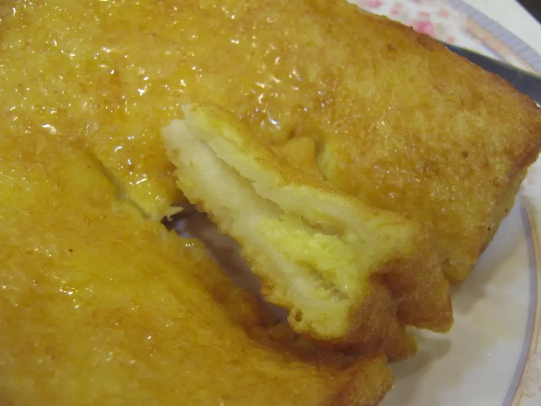西多士內奇妙的有蛋餡,但麵包明顯吸不飽蛋汁